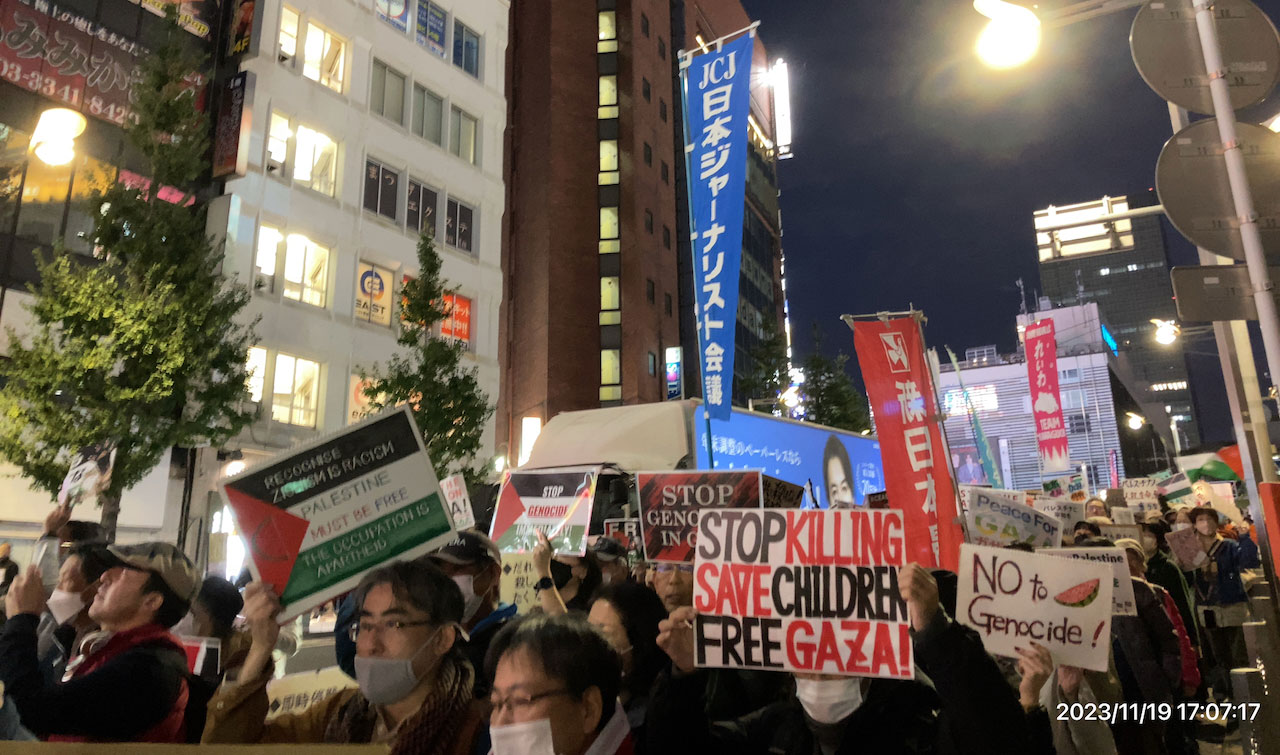 パレスチナに平和を! 11・19国会議員会館前行動、 11・19緊急新宿デモ、JCJ有志で参加