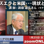 - 〈JCJ Online講演会〉ベネズエラと米国・・・現状と行方 講師:新藤 通弘さん(ラテンアメリカ研究者)■講演タイトル:ベネズエラと米国・・・現状と行方 ■開催趣旨:ベネズエラに軍事介入しマドゥロ大統領を拘束したトランプ米… 続きを読む: 〈JCJ Online講演会〉ベネズエラと米国・・・現状と行方 講師:新藤 通弘さん(ラテンアメリカ研究者)