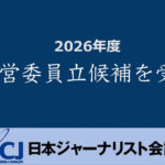 - ■JCJ総会(3月28日)に向け、運営委員立候補を受付日本ジャーナリスト会議(JCJ)は3月28日(土)午後1時から定期総会(オンライン開催)を開く。25年度活動報告と26… 続きを読む: ■JCJ総会(3月28日)に向け、運営委員立候補を受付