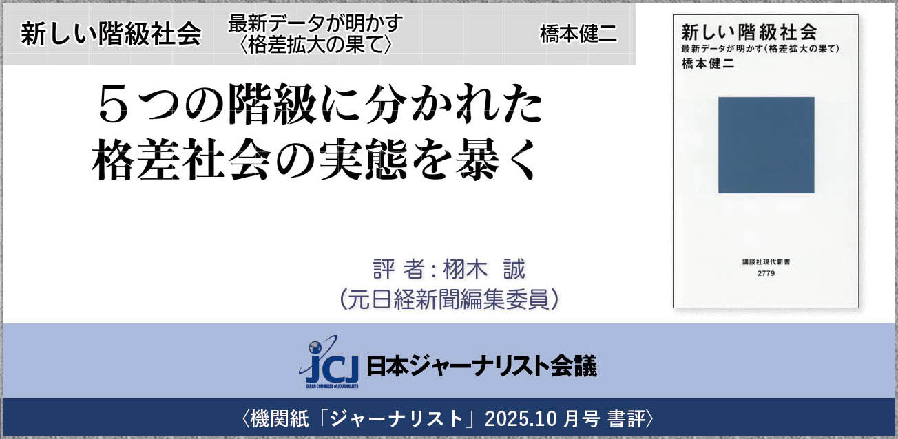 〈2025.10月号 書評〉橋本 健二(著)『新しい階級社会 最新データが明かす〈格差拡大の果て〉』・・・5つの階級に分かれた格差社会の実態を暴く 評者:栩木 誠(元日経新聞編集委員)