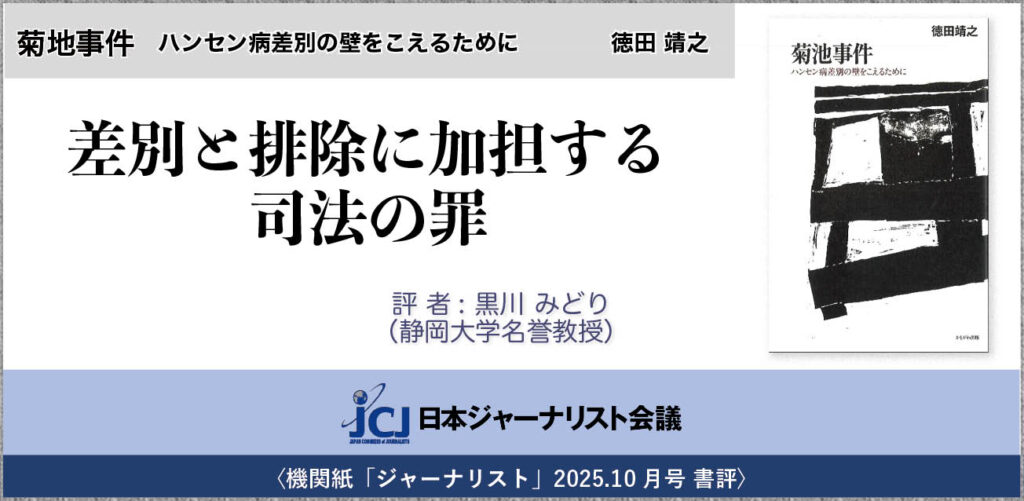 〈2025.10月号 書評〉徳田 靖之(著)『菊池事件 ハンセン病差別の壁をこえるために』・・・差別と排除に加担する司法の罪 評者:黒川 みどり(静岡大学名誉教授)