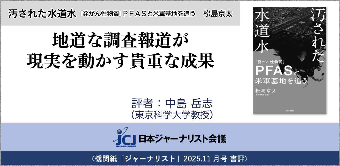 〈2025.11月号 書評〉松島 京太 (著)『汚された水道水 「発がん性物質」PFASと米軍基地を追う』・・・地道な調査報道が現実を動かす貴重な成果 評者:中島 岳志(東京科学大学教授)