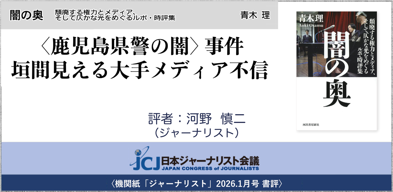 〈2026.1月号 書評〉青木 理 (著)『闇の奥──頽廃する権力とメディア、そして仄かな光をめぐるルポ・時評集』・・・〈鹿児島県警の闇〉事件から見えるメディアの現実  評者:河野 慎二(ジャーナリスト)