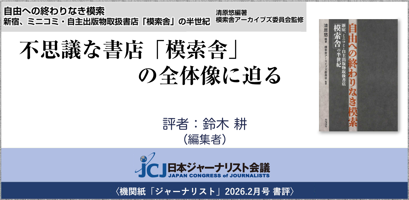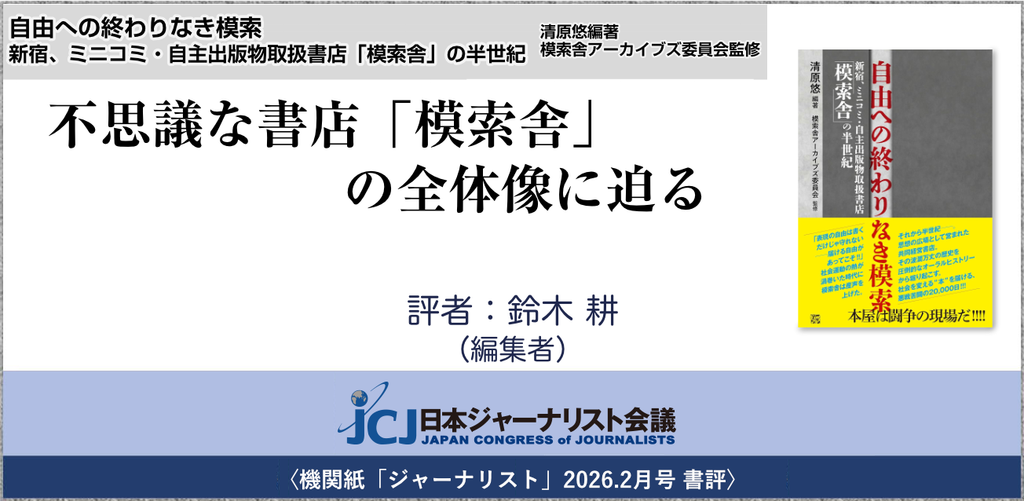 〈2026.2月号 書評〉清原悠 (編著), 模索舎アーカイブズ委員会 (監修)『自由への終わりなき模索──新宿、ミニコミ・自主出版物取扱書店「模索舎」の半世紀』・・・不思議な書店「模索舎」の全体像に迫る 評者:鈴木 耕(編集者)