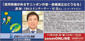 〈JCJ Online講演会〉高市政権がめざすニッポンの姿・・・自維連立はどうなる 講師:TBSコメンテーター・星 浩さん(ジャーナリスト)新着!!
