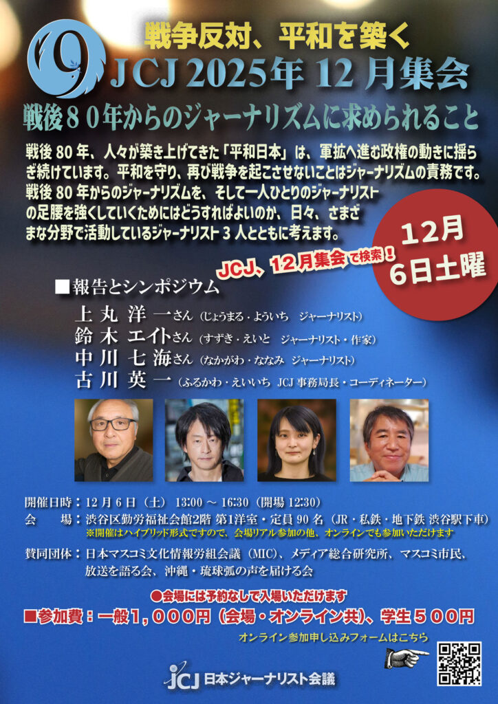 〈JCJ 12月集会〉戦後80年からのジャーナリズムに求められること