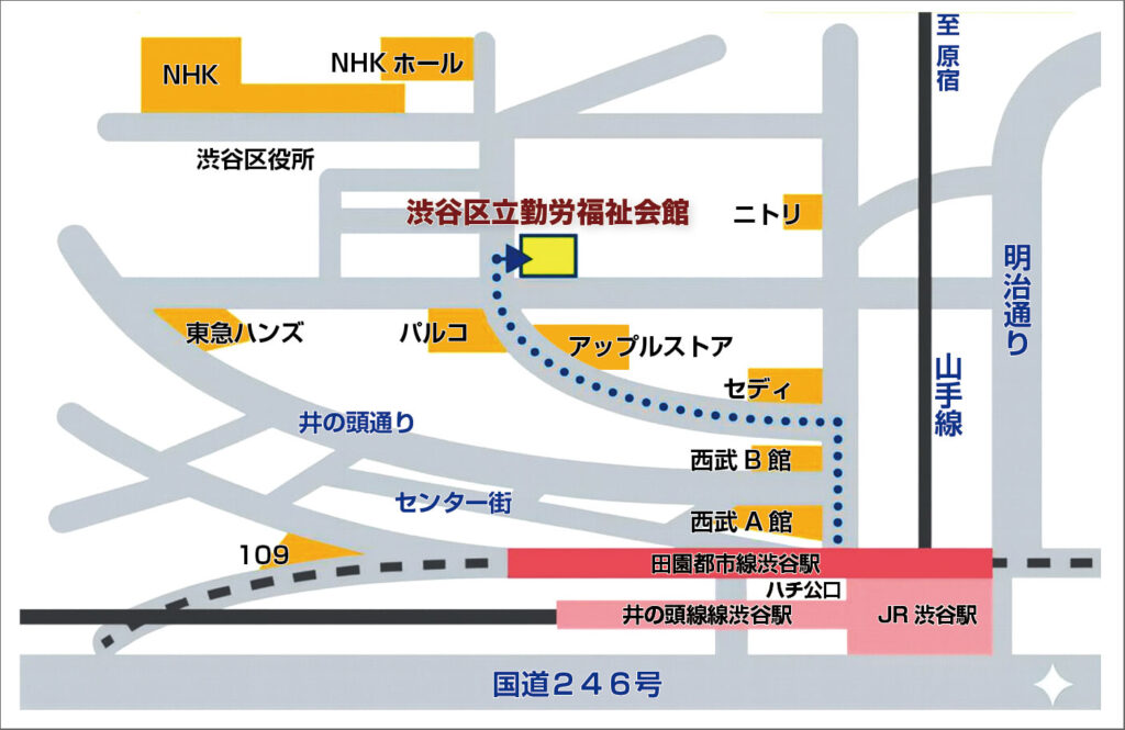 会 場: 渋谷区勤労福祉会館2階 第1洋室(JR ・私鉄・地下鉄 渋谷駅下車)