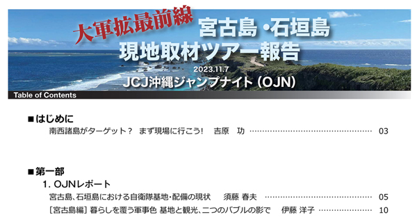 ■大軍拡最前線 宮古島・石垣島現地取材ツアー報告」(PDF) 表紙