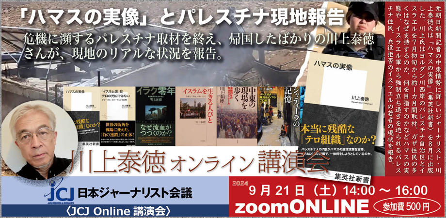 〈JCJ Online講演会〉「ハマスの実像」とパレスチナ現地報告 講師:川上泰徳さん(中東ジャーナリスト)