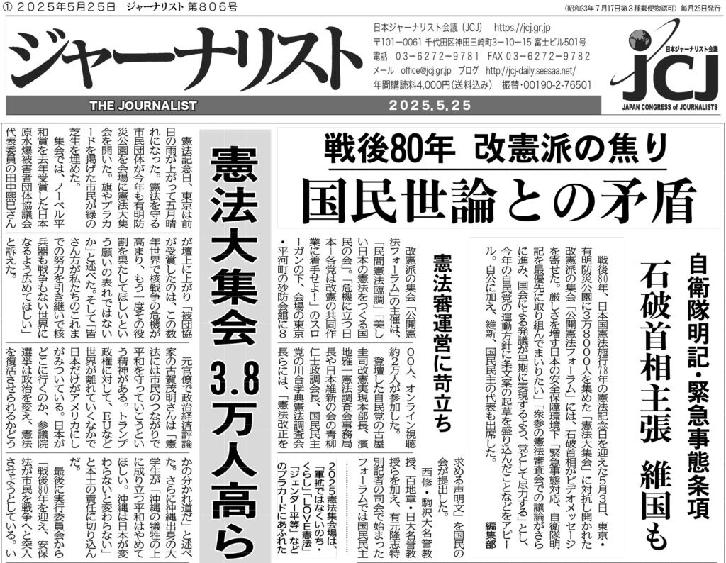 ・戦後80年 改憲派の焦り・・・国民世論との矛盾