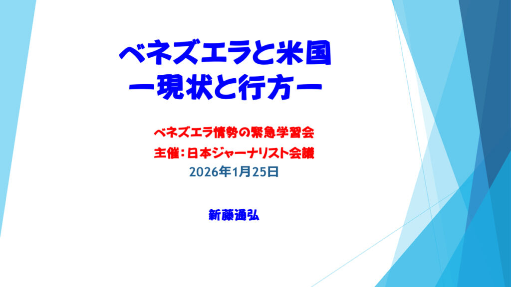 ベネズエラに軍事介入しマドゥロ大統領を拘束したトランプ米政権への国際世論の非難はおさまらない。「国際法」と「国連憲章」無視だから当然だが、そんなの関係とトランプ大統領は、狙った石油利権を手に入れた。さらにベネズエラの政策までも親米に移行させようとしている。マドゥロ大統領は独裁者、国民が大量に流出の社会主義政権倒すと主張するが、だれが見ても「自国ファースト」の蛮行だ。マドゥロ路線を引き継ぐロドリゲス暫定大統領は米国とどう折り合いをつけていくのか。トランプ大統領は中南米でこれから何をするのか。ラテンアメリカを長年フォローし分析する研究者・新藤通弘氏がベネズエラと米国の関係について現状と行方などを語る。