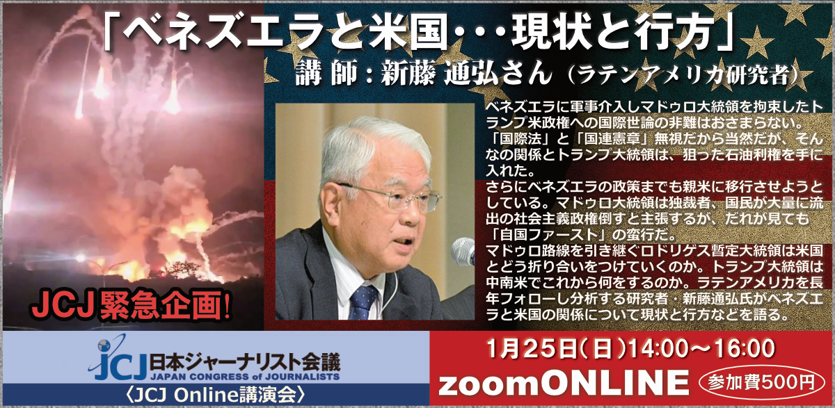 〈JCJ Online講演会〉ベネズエラと米国・・・現状と行方 講師:新藤 通弘さん(ラテンアメリカ研究者)