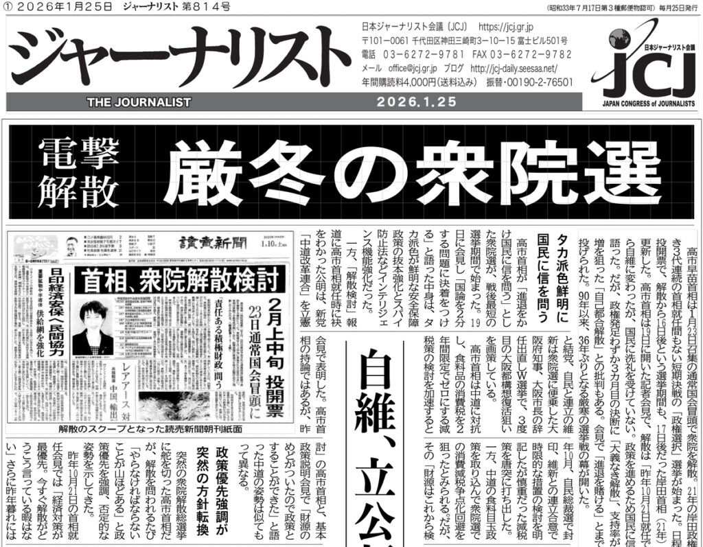 ・〈新聞〉高市首相、独断解散で政局は流動化