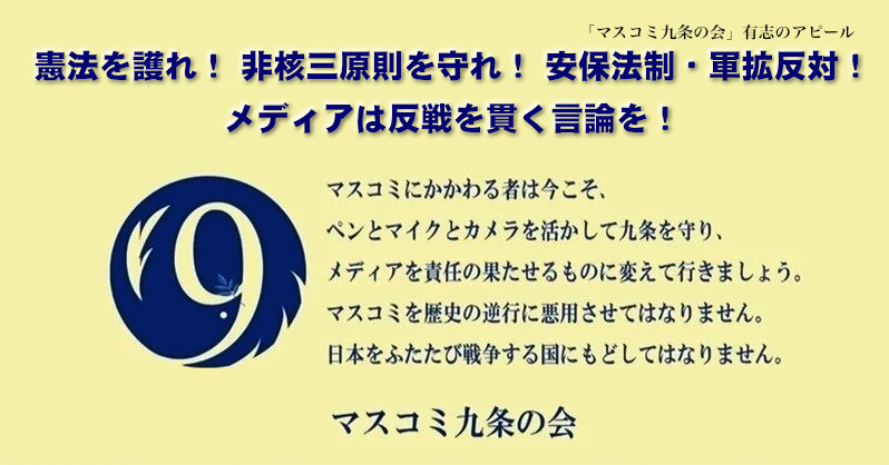 ■憲法を護れ! 非核三原則を守れ! 安保法制・軍拡反対! メディアは反戦を貫く言論を!──「マスコミ九条の会」有志のアピール