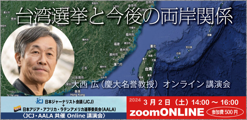 〈JCJ Online講演会〉「台湾選挙と今後の両岸関係…「過去」のある日本人として考えねばならないこと」 講師:大西 広(慶大名誉教授)