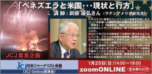 〈JCJ Online講演会〉ベネズエラと米国・・・現状と行方 講師:新藤 通弘さん(ラテンアメリカ研究者)新着!!